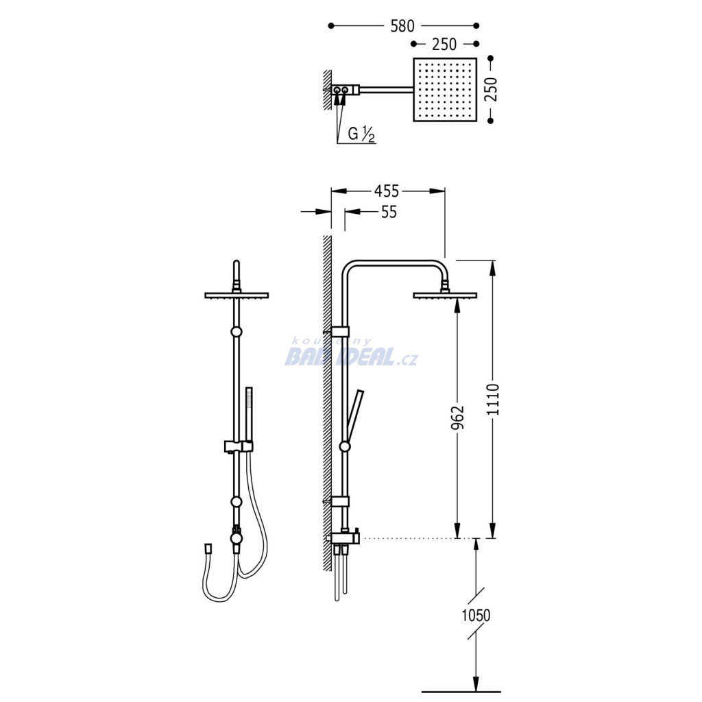 TRES termostatická sprchová baterie nástěnná 150mm, chrom (19016406)