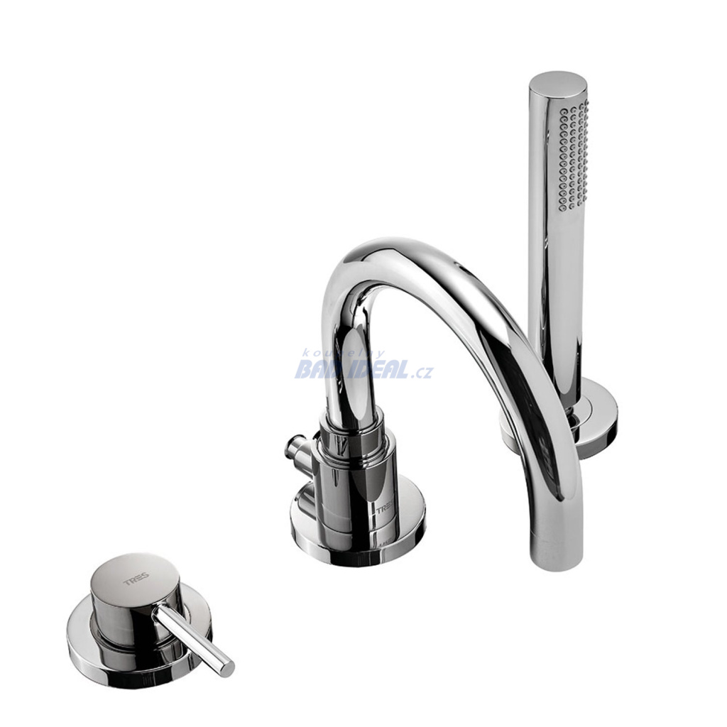STUDY-TRES Jednopáková stojánková vanová baterie. Sprcha, proti usaz. vod. Kamene.· Průtok: 3 bar - 14 l/m· Kompatibilní se sadou nádrže ref. č.: 1.62.245. V chromovém provedení, ručka. 262.150.01
