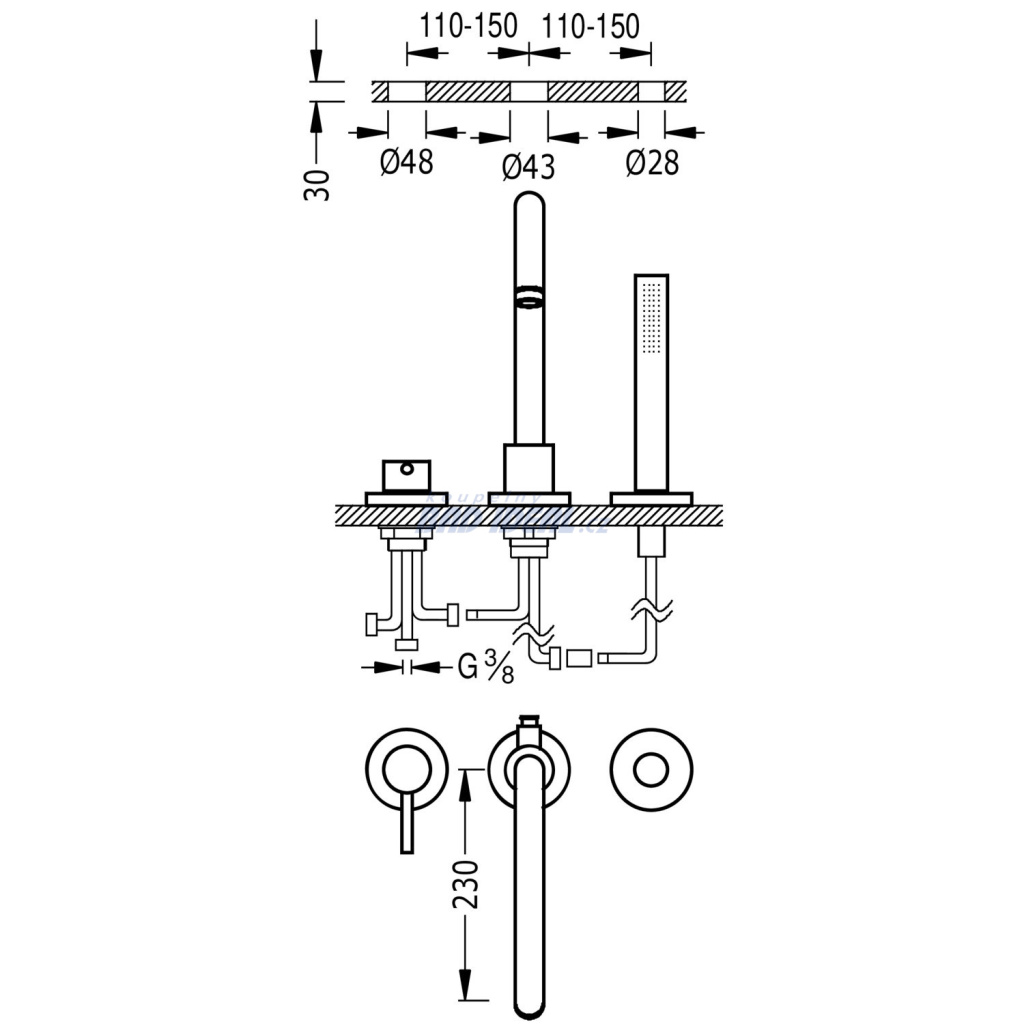 TRES Montážní sada k 3-otvorové baterii s odtokem zbytků vody (162245)