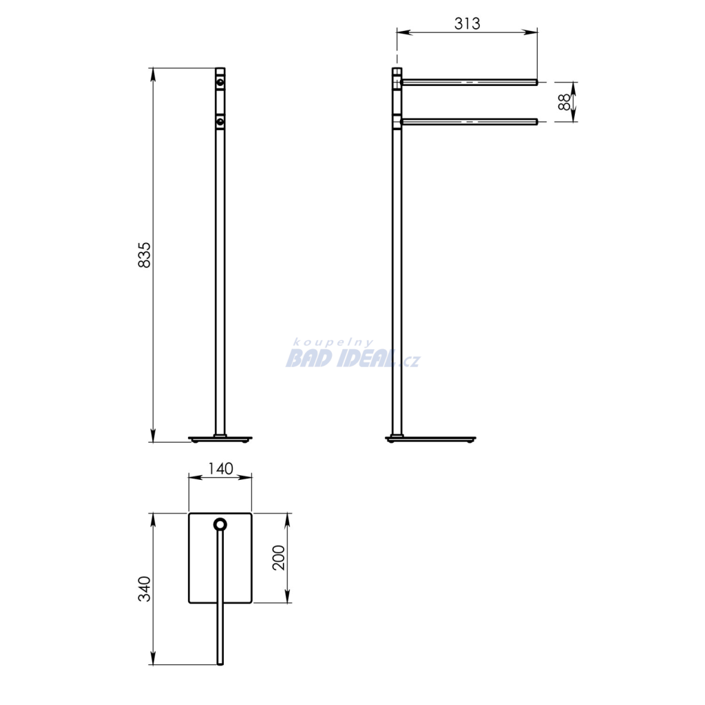 TRILLY stojan s držákem ručníků, hranatý, gun metal.