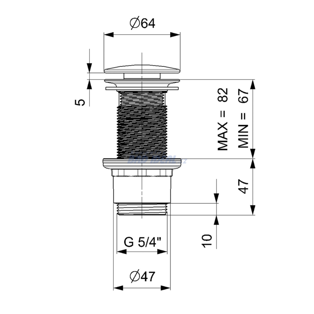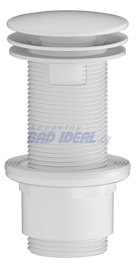 Umyvadlová výpust 5/4“, neuzavíratelná, velká zátka, 10-80mm, ABS/bílá.