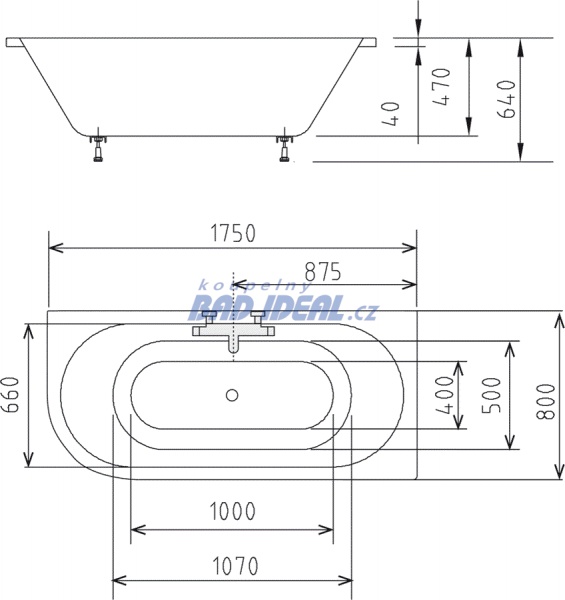 K vaně je nutno použít přepadovou soupravu o délce min. 675 mm.