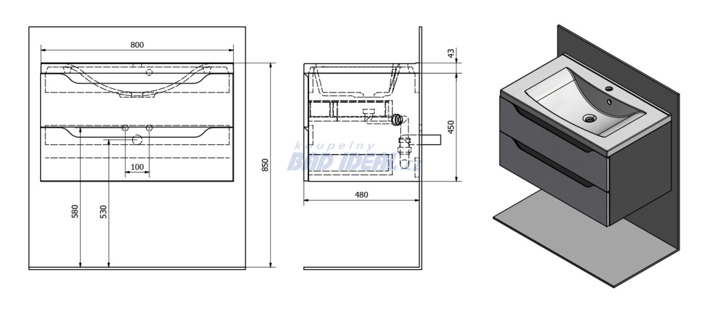 WAVE umyvadlová skříňka 79,7x45x47,8cm, agila.