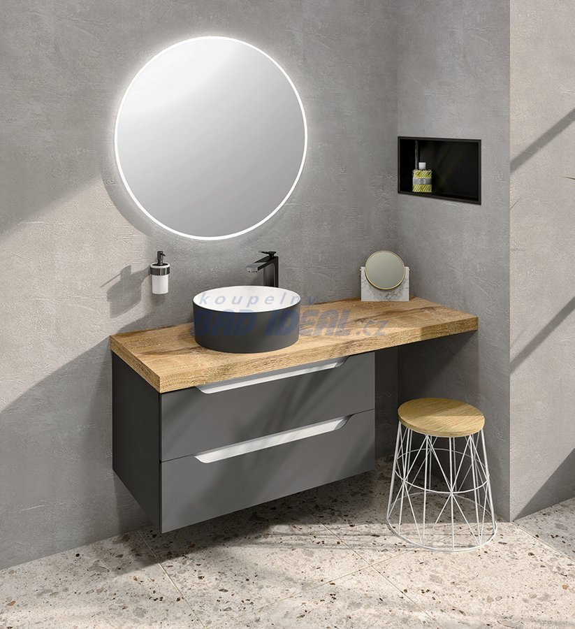 WAVE nabízíme v šesti variantách šířek umyvadlových skříněk, včetně dvojumyvadlových. Na skříňky lze použít i desky z Rockstonu, z kompozitu (HPL laminát) nebo AVICE desku a vybrat si ze široké nabídky umyvadel na postavení. V nabídce jsou i doplňkové vysoké skříňky, které společně s umyvadlovou skříňkou tvoří harmonický celek.