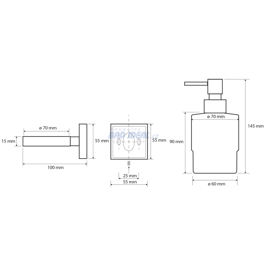 X-SQUARE dávkovač mýdla 200ml, mléčné sklo, chrom. Vlastnosti Značka SAPHO Série X-SQUARE Rozměr 70x145x100 mm Šířka 70 mm Výška 145 mm Hloubka 100 mm Barva Chrom Materiál Mosaz, Sklo Tvar Hranaté Druh Dávkovač mýdla… Více informací