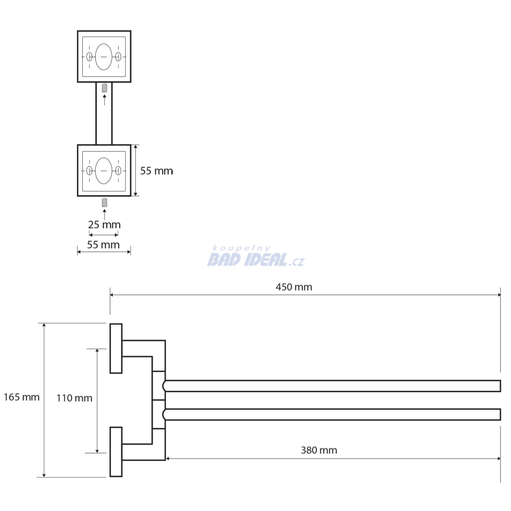 X-SQUARE dvojitý držák ručníků otočný 420mm, chrom.