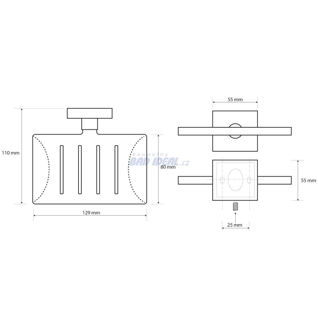 X-SQUARE mýdlenka obdélníková s otvory, chrom.