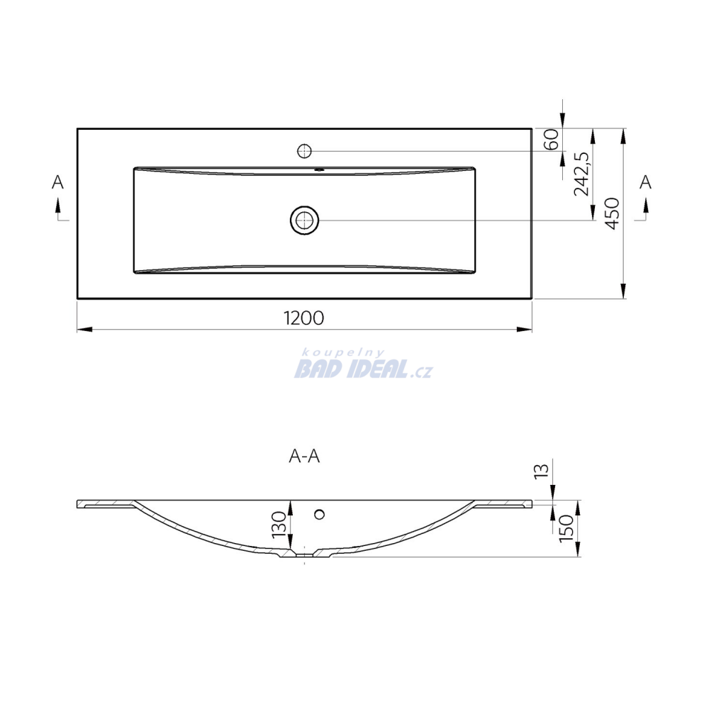 YUKON umyvadlo 120x45cm, litý mramor, bílá.